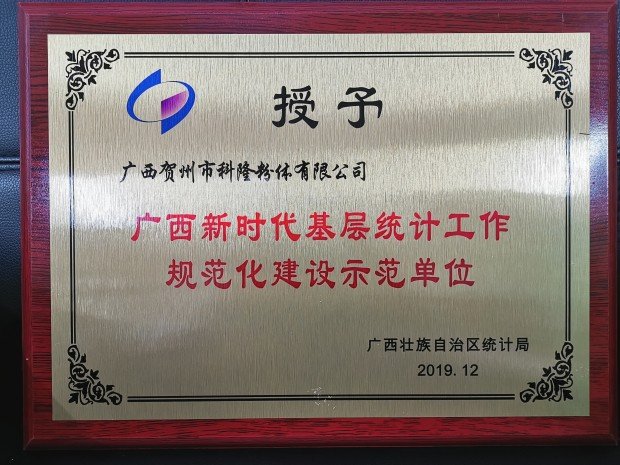 喜讯!广西科隆粉体有限公司被自治区授予统计工作示范单位